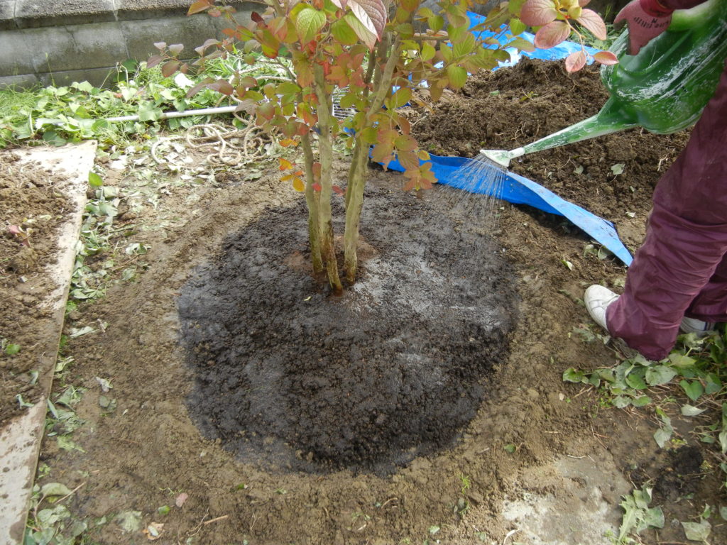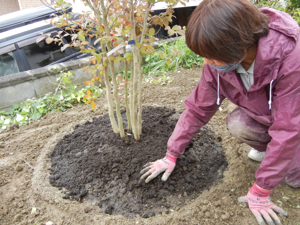 木が健全に育つために必要なのは先ず何よりも酸素であること、水をしっかり遣ることの意味は水に含まれている酸素をしっかりと根に与えるためであり、有機質の肥料をあげるとそれが微生物に横取りされた上に余計なガスまで出ることになり、肥料遣りが結果として木にとっては虐待行為になる場合があることをお話ししました。